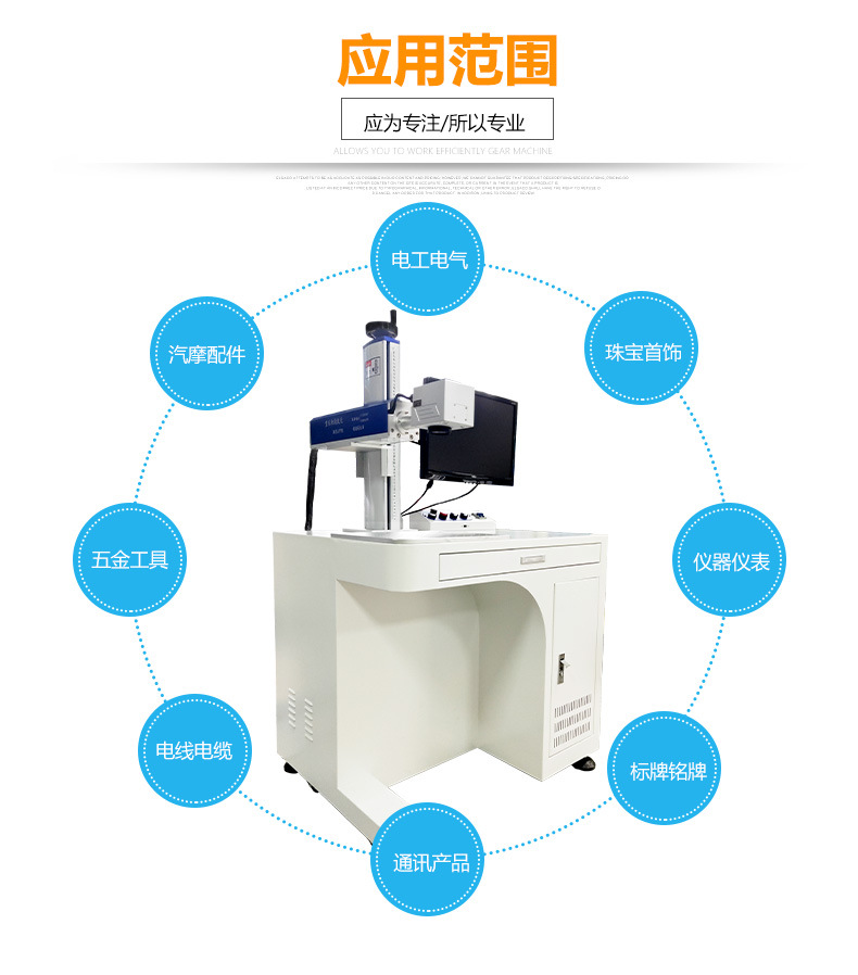 光纖激光打標機采用光纖激光器,振鏡掃描系統,輸出功率穩(wěn)定,光學模式好,光束質量優(yōu)異、打標速度快,效果好,效率高,能充分滿足客戶大批量生產需求。